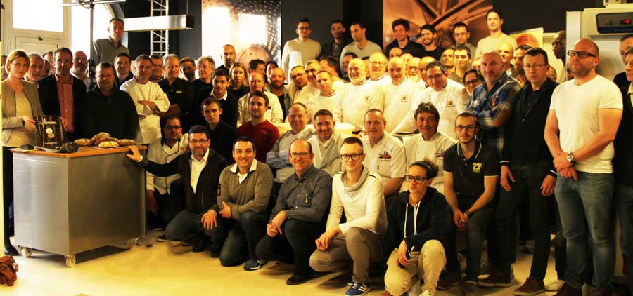 Installés dans le fournil de l’école de formation « Cuisine Mode d’Emploi(s) » créé par Thierry Marx, les Ambassadeurs du Pain ont dévoilé les techniques de la méthode « Respectus Panis » à une centaine de professionnels venus parfois de loin (Australie, Italie, Espagne, Belgique). Amandio Pimenta est revenu sur les fondements de la méthode d’un point de vue nutritionnel, organisationnel, économique et environnemental. Puis ce sont Thierry Meunier, Pierre Nury, Thomas Planchot et Henri Poch qui ont été à la manœuvre : explications des farines utilisées, bienfaits du levain même en quantité infime, révolution du pétrissage court et lent, intérêt d’une longue fermentation à température ambiante et constante, tout en fabriquant en direct les pains et baguettes.