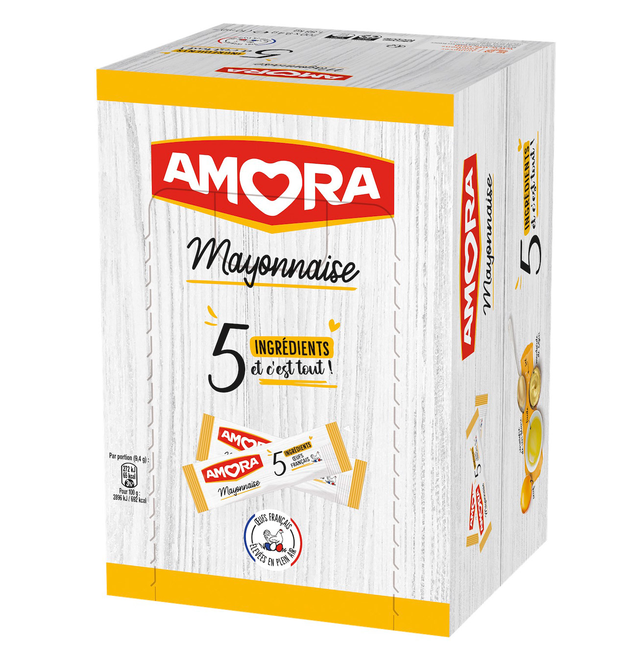 Pour permettre aux acteurs de la restauration hors domicile de proposer des produits plus sains et plus gourmands, Amora a revisité sa recette de mayonnaise pour ses formats dosettes et seaux. Résultat : seulement 5 ingrédients dans ses dosettes, une haute fermeté et toujours autant de saveur et un goût authentique dans les seaux ! Le tout fabriqué en France avec des œufs français de poules élevées en plein air et conditionné dans des emballages recyclables (dès fin 2022 pour les dosettes).