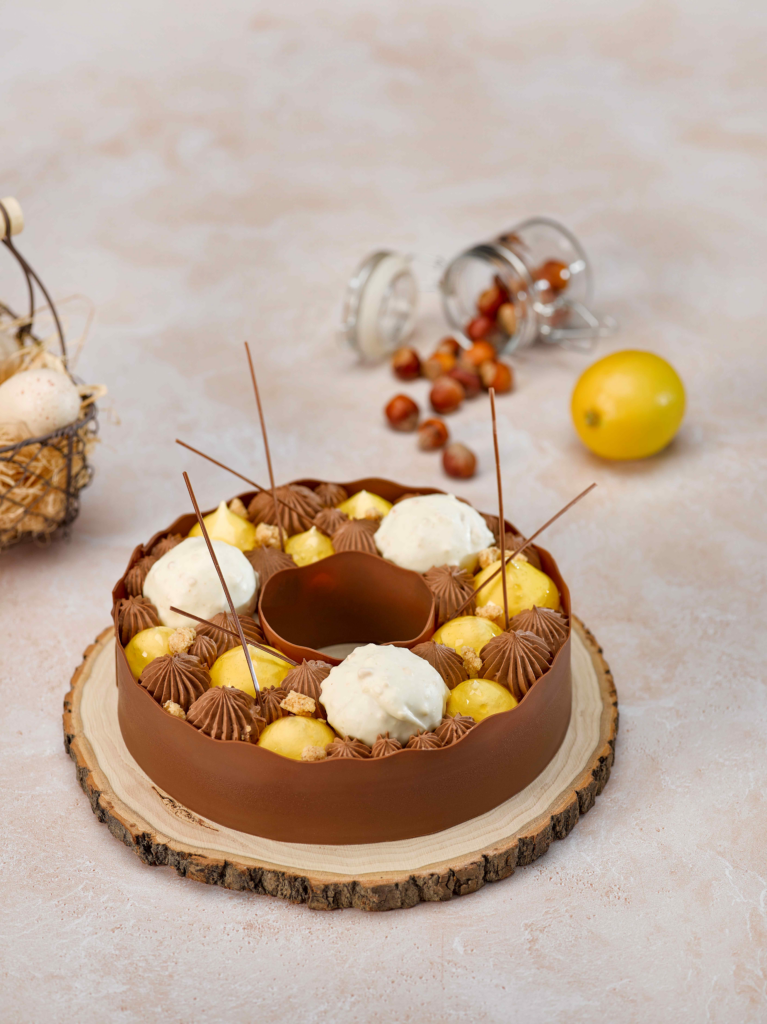 À l’occasion de Pâques, ancel propose aux artisans et à leurs clients une Balade Printanière autour du chocolat, de la noisette et du yuzu. De quoi faire saliver les gourmands avec cet entremets croustillant au Yuzu, bavaroise à la noisette du Piémont, décors en crémeux chocolat yuzu et crème diplomate au yuzu.