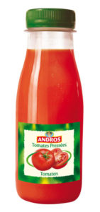 Le jus d’orange bio Andros 25 cl, 100 % pur jus, certifié agriculture biologique : parfait complément à proposer à la carte de menus bio. Le jus de tomates pressées Andros 25 cl, 100 % pur jus : idéal pour répondre aux attentes de consommation de la fin de journée. L’ ACE, orange carotte citron Andros 25 cl, garanti en vitamines A, C et E : douceur et note acidulée pour un pur moment de rafraichissement.