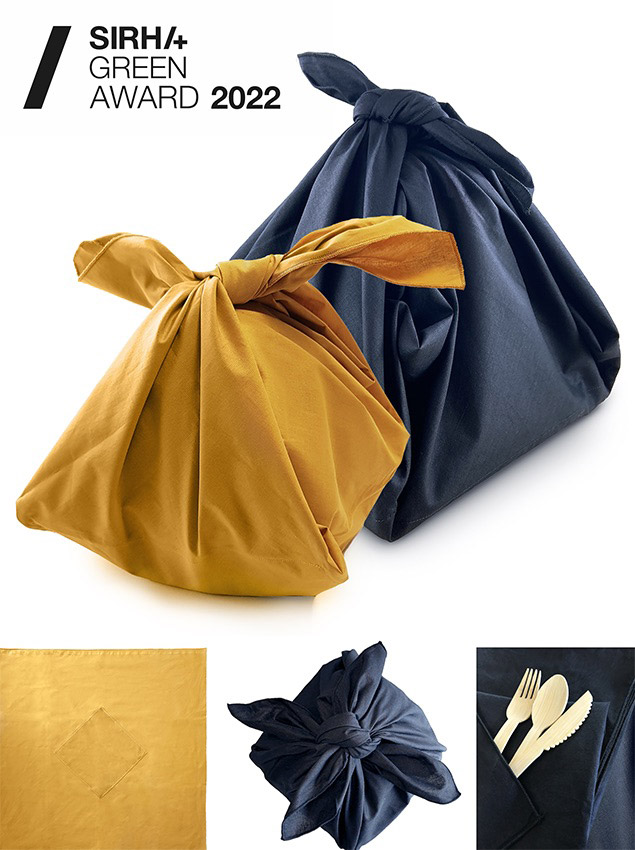 Confectionné dans une étoffe 100% coton et qualitative avec une finition au point bourdon, le Balubag se transforme ensuite en chemin de table ou en petite nappe de pique-nique. Il est lavable en machine et donc réutilisable. Autant de bonnes raisons d’avoir remporté le Sirha Green Award dans la catégorie « Emballages ».