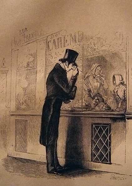 En marchant à travers Paris, il passera devant une pâtisserie et sera attiré par une pièce présenté en vitrine. Curieux il entrera pour demander qui en était l’auteur. Le patron, M Gouffé, présenta son fils, assez fièrement. Ainsi il le prit sous son aile, et forma celui qui écrira pour la première fois, un livre de recette avec les mesures, temps et degré de cuisson ; Jules Gouffé.