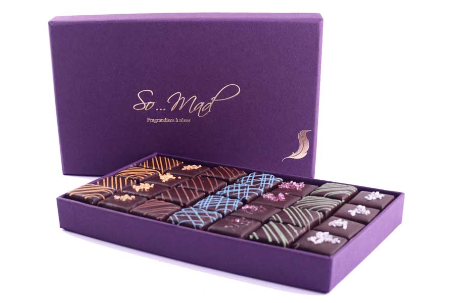 Moins poétiquement et plus techniquement, le défi était de sublimer les arômes du chocolat, en les combinant à de très légères touches olfactives (voir encadré). Les saveurs de ces chocolats correspondent aux accords issus de sept familles olfactives : Hespéridé, chypre, fougère, cuir, boisé, oriental, fleuri.