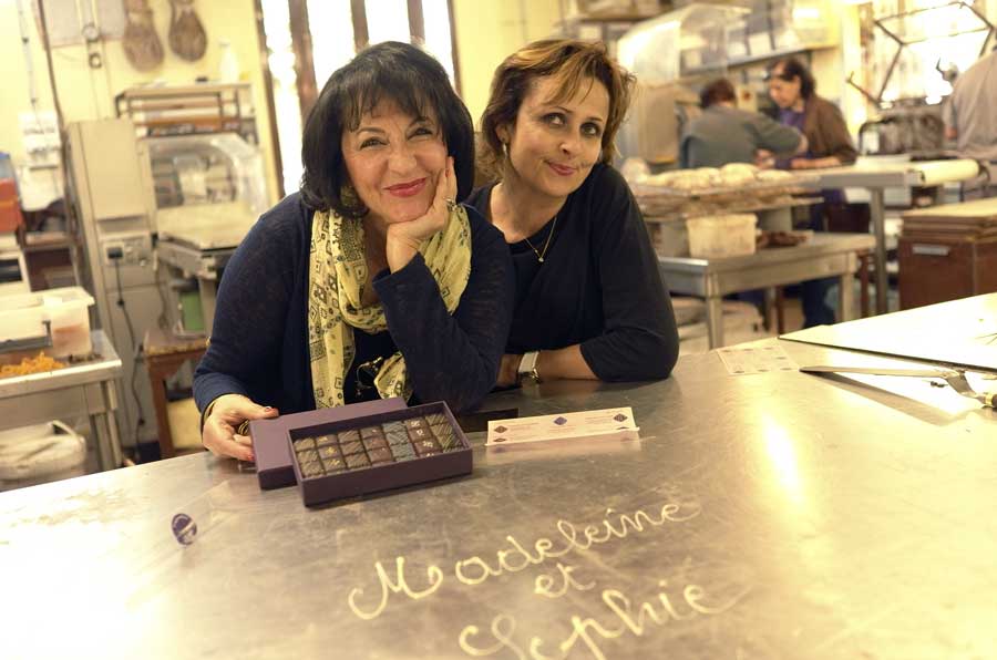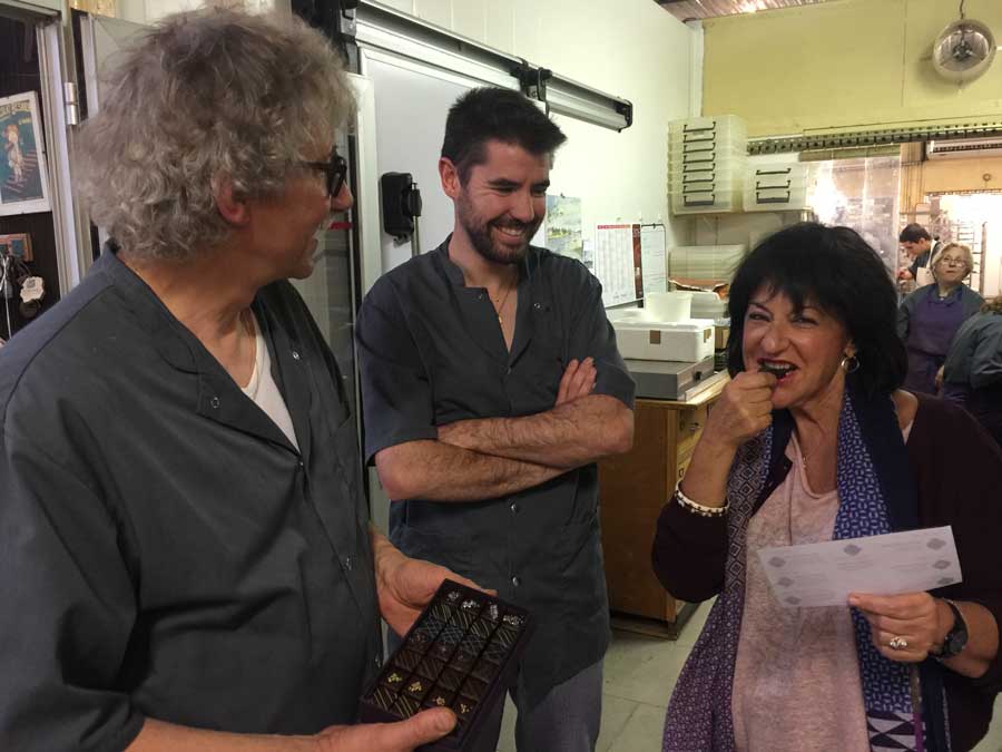 Michel Violettes (à gauche), chocolatier à son compte depuis 1977, goûte la dernière production avec Loïc Eonin, son collaborateur et Madeleine Tordjman, la créatrice des Fragrandises.