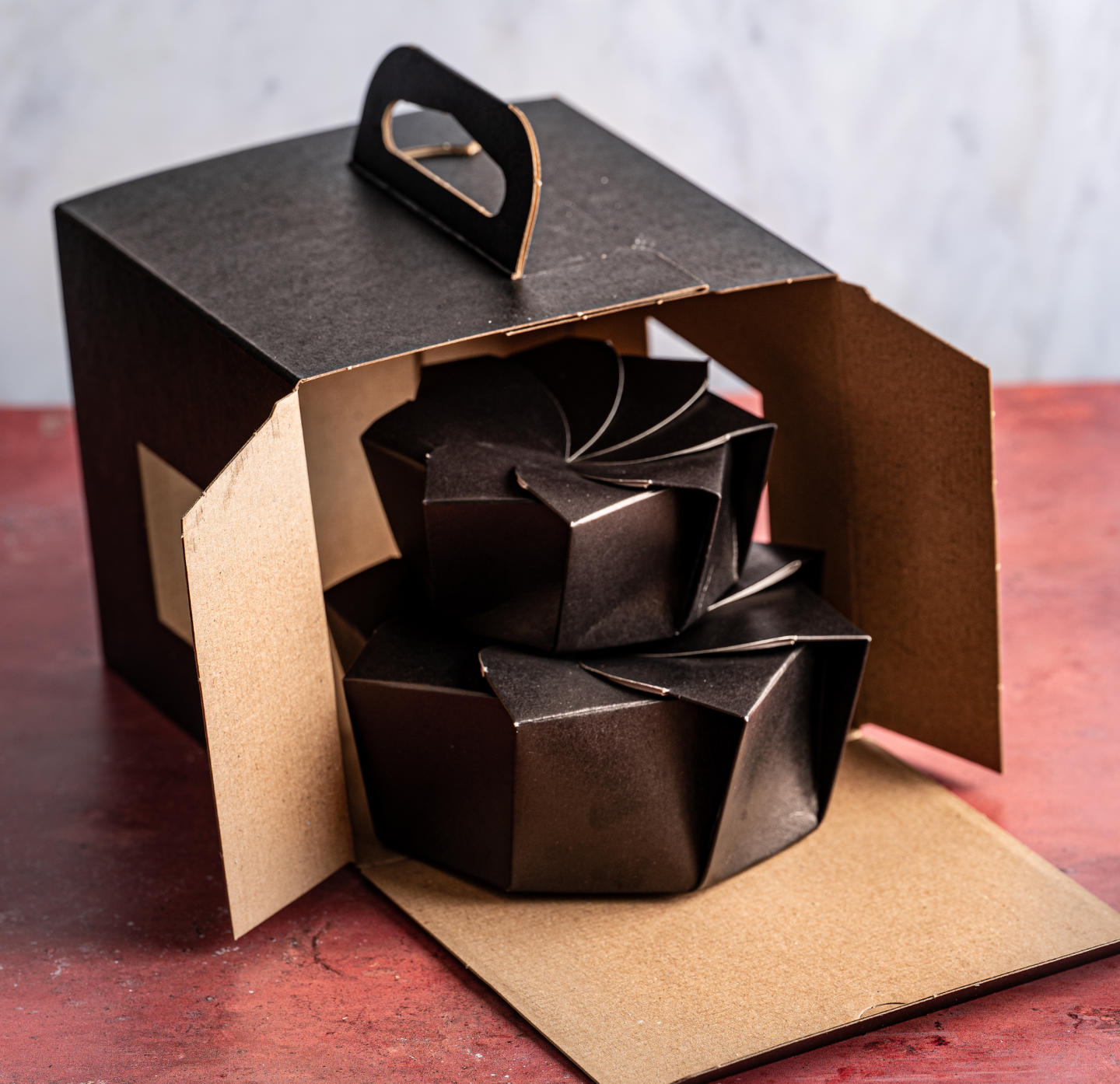 Avec ses coffrets à la fois pratiques et chics, COMATEC offre aux acteurs de la restauration commerciale et des BVP, l’opportunité de mettre en valeur leurs produits et de séduire leur clientèle, qui sera sensible à ces emballages en version noire particulièrement élégants. Esthétiques, ces coffrets n’en sont pas moins pratiques : livrés à plat, ils sont stockés facilement puis pliés rapidement, et modulables. Résistants, ils peuvent renfermer de multiples combinaisons d’emballages design (comme les boîtes en forme de fleur de la gamme Bloom, relookée en noir pour l’occasion), qui contiendront plats cuisinés, pâtisseries, ou confiseries.