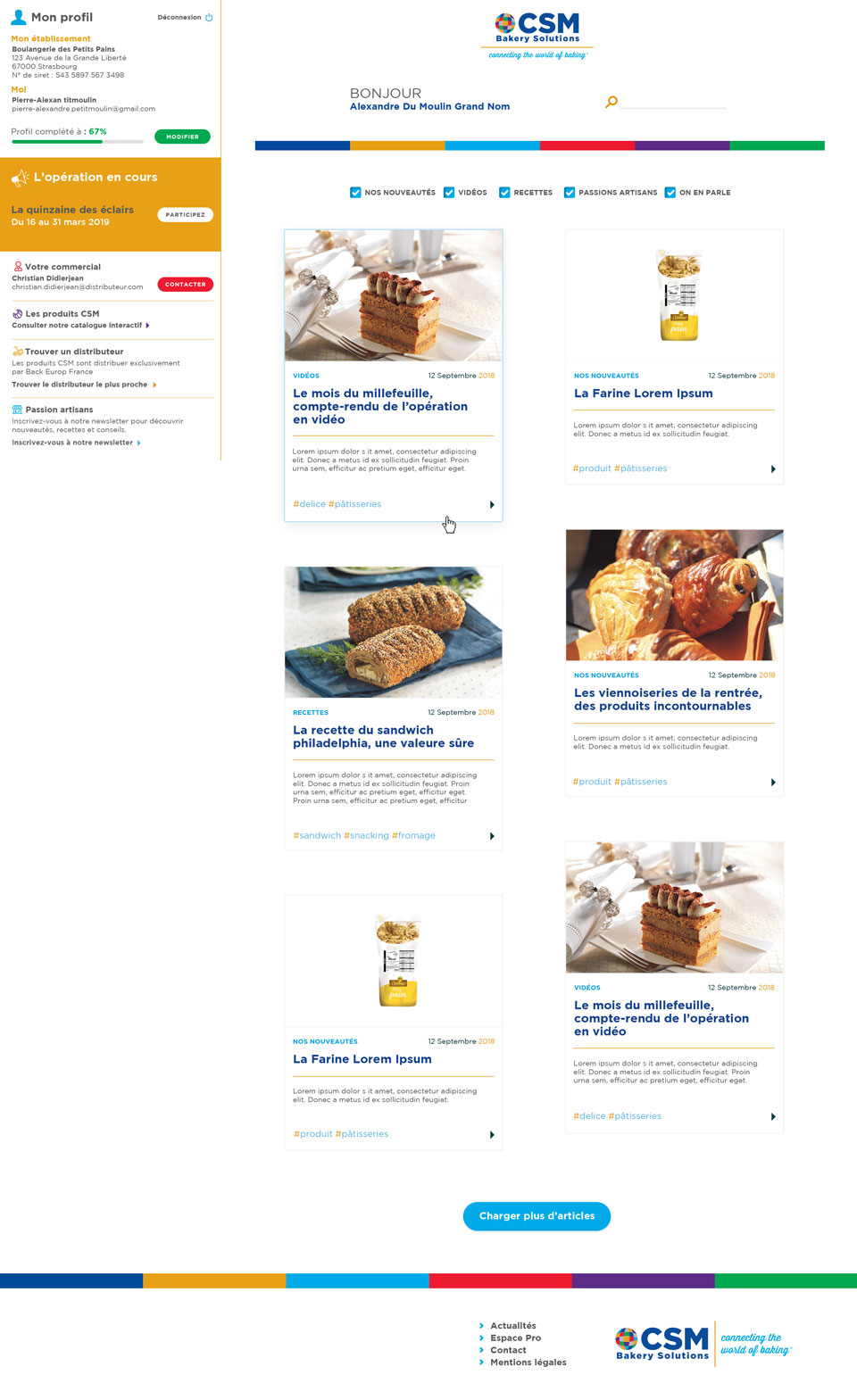 Toujours au service de sa communauté d’artisans gourmands, Le Cercle des Gourmands lui a alloué une rubrique spécifique sur son nouveau site. Réservée aux clients CSM via les marques Artisal, Marguerite, Catherine, Dobla ou encore Dejaut, elle permet une inscription rapide avec la reconnaissance du numéro de SIRET. Lors de cette étape, chaque professionnel peut compléter son profil en renseignant les adresses de ses boutiques qui sont alors visibles par les visiteurs du site, et ce tout au long de l’année, sur la carte de l’onglet « Nos artisans gourmands ». Grâce à l’outil, les participants des campagnes phares de CSM France, telles que La Quinzaine des Éclairs ou Les Trop Choux, bénéficient également d’une mise en lumière additionnelle durant la période des animations. Un référencement automatique permet en effet aux becs sucrés amateurs de créations originales de retrouver facilement les boutiques partenaires proches de chez eux. Cet espace facilite aussi toutes les démarches des artisans pour s’inscrire à une opération en cours, prendre contact avec un commercial CSM France, trouver des recettes, des vidéos ou des tutoriels, découvrir les nouveautés produits ou encore consulter le catalogue.