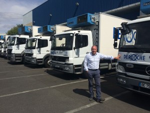 MB : Avant de prendre la route, tous les jours, 100 tonnes sont déchargées sur nos 29 quais et 100 tonnes sont ventilées dans nos 50 camions de livraison. Nos magasiniers sont équipés des dernières technologies en termes d’enregistrement et code barre. Depuis quelques mois, ceux-ci sont équipés de PDA à reconnaissance vocale pour préparer les commandes. Le commercial peut désormais enregistrer la commande du client sur un Ipad avec un logiciel de force de vente synchronisé qui déclenche automatiquement la préparation de la commande ainsi que sa livraison. DEROCHE facture mensuellement en moyenne 2 400 clients et émet plus de 12 000 factures par mois. Nous avons également adapté nos camions aux dernières normes environnementales anti-pollution et anti-bruit.