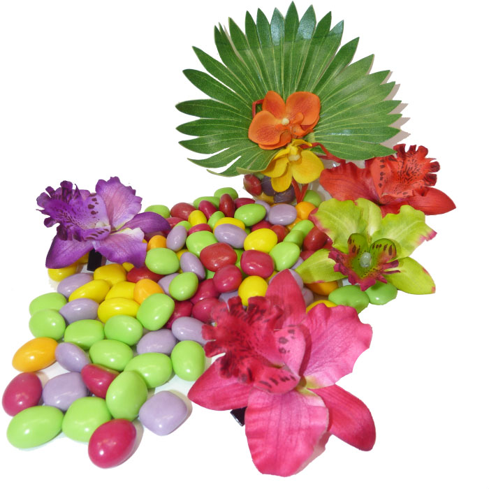 Cette dragée est composée de pulpe de fruit, au goût typiquement exotique.Cette confiserie est idéale pour surprendre lors d’un anniversaire, ou pourquoi pas lors d’un mariage métissé. Celle-ci se décline en 6 saveurs différentes : ananas, goyave, vanille, passion, litchi et mangue. Ces dragées exotiques réchaufferont l’ambiance à coup sûr !