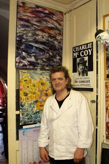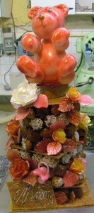 En ce qui concerne le laboratoire, la plupart des matières premières sont élaborées par l’artisan lui-même : nappage, praliné, fondant… et la boutique révèle des talents d’artiste peintre, collectionneur de clowns, pièces artistiques réalisées en sucre, pièces de démonstration pour les cérémonies… Et comme les passions n’ont pas de limite, Gilles pratique également la musique avec l’harmonica, la guitare jazz-blues… Oui, il y a des professionnels qui donnent envie.