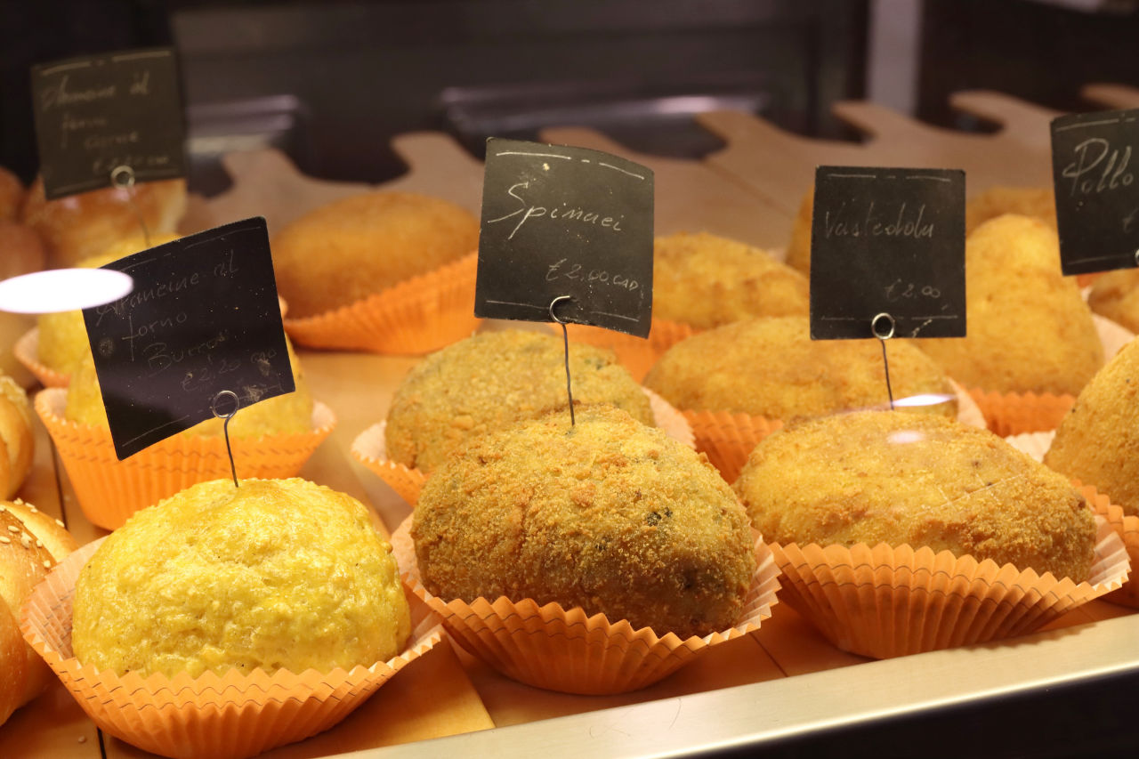 En rôtisseries salées, combien de délices ! Dont les fameux arancine (croquettes de rizfarcies de sauce à la viande et petits pois, ou de jambon et mozarella). Le sfincione, brioche garnie d’oignon, de caciovallo, anchois, tomate et origan… des pizzas de toutes sortes, les sandwiches Panelle e Crocchè, mêlant préparation à base de farine de pois chiches et de pommes de terre…