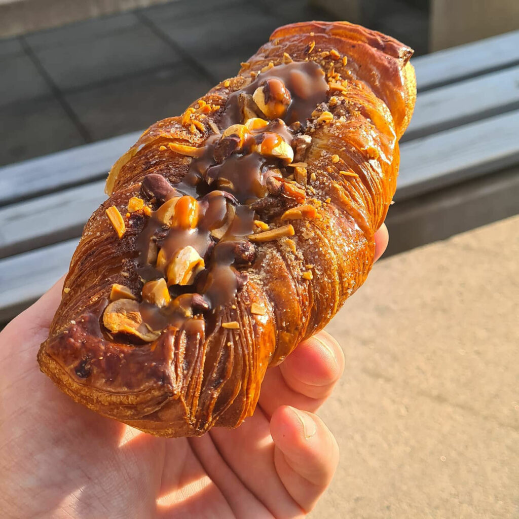 Vive les croissants, pains au chocolat, roulés feuilletés à la cannelle, les kouglofs, les cookies, sans oublier la brioche ! A la vanille, au caramel… Elles font partie des grands succès. « Il y a aussi la pâtisserie du week-end, avec des tartelettes aux fruits de saison que j’aime beaucoup travailler, cela me permet d’avoir des variations naturelles de la gamme au cours de l’année. Mon produit fétiche reste le chocolat. Et tous les fruits secs. »