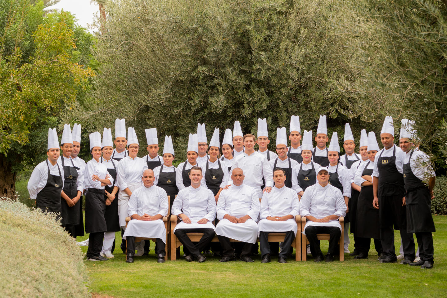 Pains, viennoiserie, chocolaterie, confiserie… tout est fait sur place. De même pour la pâtisserie marocaine. La brigade du chef pâtissier se compose de36 personnes salariées et de 12 stagiaires (formés dans leur propre académie), pour le room service, le petit déjeuner, le tea time, les banquets en extérieur. Et, les tables des 4 restaurants: LeJardin, restaurant asiatique avec cuisine sur le feu et desserts glacés, La Table, cuisine française bristronomique chic par Yannick Alleno. Le Sesamo, un typique italien-vénitien signé par le grand chef Maximiliano Alajmo et La Grande Table Marocaine, alliant traditions et modernité. Quatre lieux avec leur identité propre, imaginés pour accompagner tous les rêves gourmands. «Nous n’avons que 53 riads à servir. L’offre doit être exceptionnelle. C’est un travail de tous les jours où nous ne refusons jamais rien à nos clients, du sur mesure constant. Je me dois de citer mes chefs avec qui je travaille depuis quelques années, qui permettent avec le reste de l’équipe bien sûr, de réussir chaque jour le challenge : Jaouad Oualadi, Romain Corrèze, Mohamed Gamani, Aziz Bouzkri et notre chef boulanger Hassan El Fallaouy. »