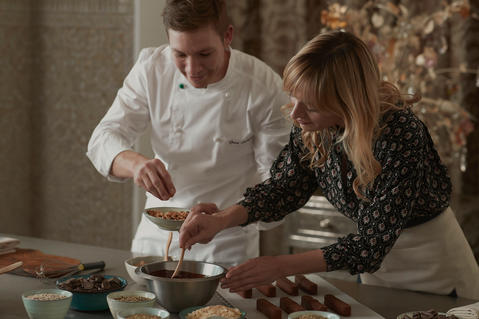 Il était une fois un Royaume. Et dans ce royaume, une ville où dans un même lieu, tous les plus grands artisans du pays s’étaient réunis pour présenter leurs savoir-faire et leurs traditions. Marbres, ferronneries, céramiques, zelliges, tapis, tissus, cuirs, broderies, marquèteries… Bienvenue au Royal Mansour, spectaculaire reflet de l’art de vivre marocain. Pour œuvrer à l’univers sucré du palace, le chef Jean Lachenal, jeune et talentueux pâtissier qui, avec ses racines françaises, s’inspire des longues et riches traditions de son pays d’accueil.