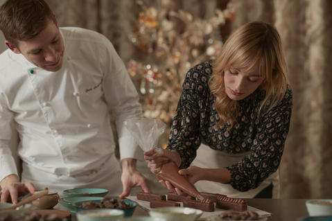 « On travaille les recettes, on teste le croquant, croustillant, demi-croustillant, rien de simple. Le chocolat toujours un aspect gustatif, démontable, pour permettre aux clients de ne pas le casser. On aime changer la gestuelle, dans un esprit de gourmandise et de jeu. »