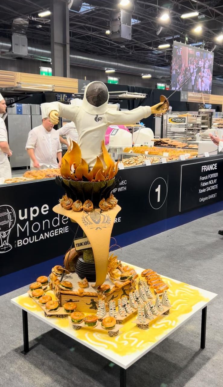 L’épreuve de la Restauration boulangère a été réalisée à six mains sur le thème commun du sport, en écho aux grands événements sportifs qui se tiendront en France tout au long de l’année 2024. L’équipe de France a notamment réalisé une sculpture sur le thème de l’escrime et succède ainsi au Taipei Chinois, lauréat en 2022.