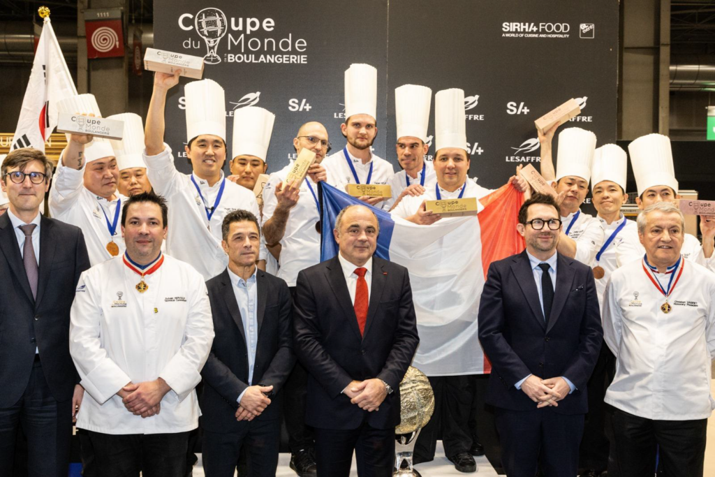 Ce lundi 22 janvier, l’annonce de la victoire de la France, représentée par Franck Fortier, Fabien Nolay, Xavier Sacriste et coachée par Grégoire Bardet, clôture la 12ème édition de la Coupe du Monde de la Boulangerie – cofondée par Ekip, la Confédération Nationale de la Boulangerie-Pâtisserie et le Club des MOF boulangers – au deuxième jour d’un Sirha Europain à très forte affluence. Une victoire d’autant plus symbolique qu’elle intervient 16 ans après la dernière de la France. La Corée du Sud et le Japon complètent le podium, respectivement à la 2ème et 3ème place.