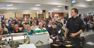 Pendant 3 jours, les démonstrateurs assuraient un service permanent auprès de plus de 520 personnes sur des thèmes bien précis. La Trittico Exécutive est conçue pour élaborer vos préparations alors que le professionnel gère la mise en place. Déjà là, il est possible de penser qu’une personne est soulagée des tâches répétitives comme surveiller la cuisson, surveiller le refroidissement et bien entendu l’émulsion de votre recette personnalisée.