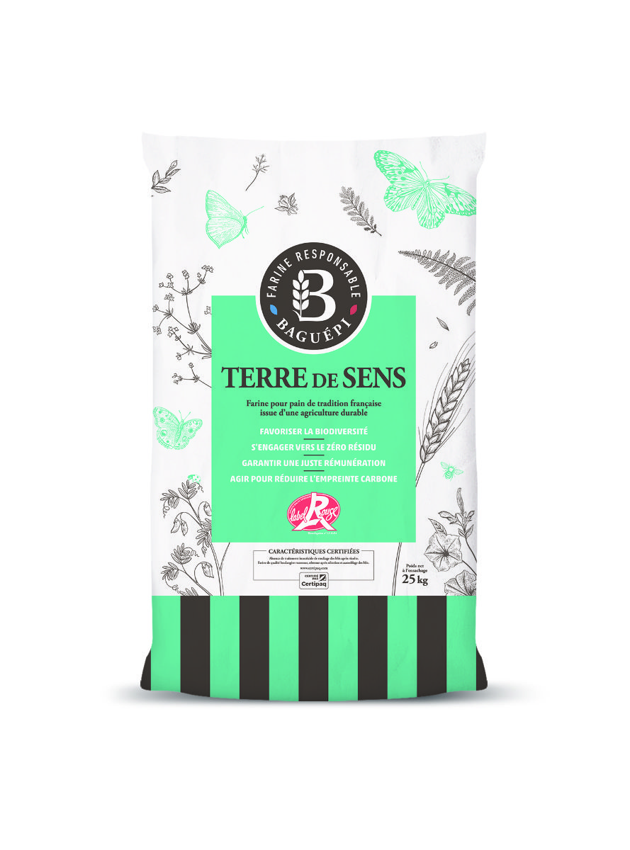 Baguépi Farine Responsable, la marque de Moulins Soufflet innove avec TERRE DE SENS, une farine de tradition certifiée Label Rouge issue de la filière Excellence Semons du sens.