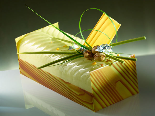 Pour réaliser la bûche Stéphane Leroux et commander des moules, adressez-vous à votre représentant PatisFrance-Puratos-Belcolade.
