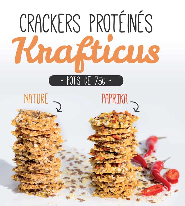 Fins, légers et croustillants, les Crackers protéinés, lancés sous la marque KRAFTICUS, sont fabriqués selon un procédé spécial breveté.