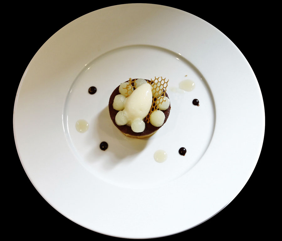 Bernard Vaussion : « J’ai aimé le cylindre croquant travaillé par un candidat. De petit diamètre, farci avec le sorbet-sabayon, qui pouvait fondre très rapidement. C’était comme j’aime : propre, net, précis. On ne pouvait pas faire mieux ! Un autre a fait rôtir une poire qu’il a farcie avec un appareil à crème brûlée. J’ai trouvé cela osé, sympa et, très bon au niveau gustatif. Je remarque que les jeunes sont toujours dans la création. Il y en a qui partent même sur des choses un peu « gonflées », mais le résultat est au rendez vous.»