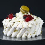 Pour cresco, Stéphane Glacier met un parfum d’Orient dans sa nouvelle recette de Vacherin glacé à la Pistache Kerman et aux fruits rouges