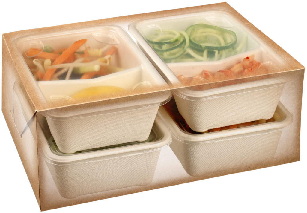 Les professionnels peuvent composer le contenu de leur Postal Lunch selon leurs besoins, grâce aux nombreux contenants naturels biodégradables et/ou recyclables proposés par SOLIA (assiettes ou barquettes en pulpe de canne, pots ou saladiers en fibre de bambou), offrant ainsi à leurs clients une solution écoresponsable dans son ensemble.