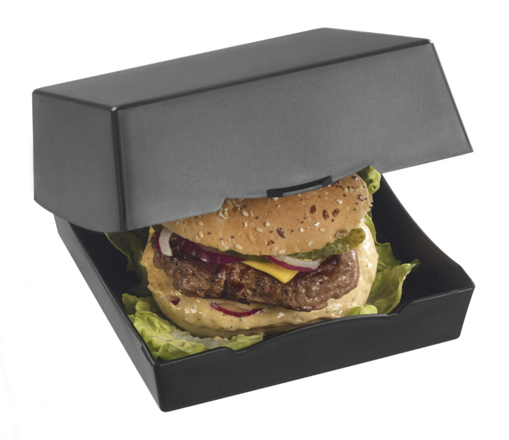 La Boîte Burger LOOP, convient pour servir et déguster tous les burgers, sandwiches, saucisses-frites, etc.