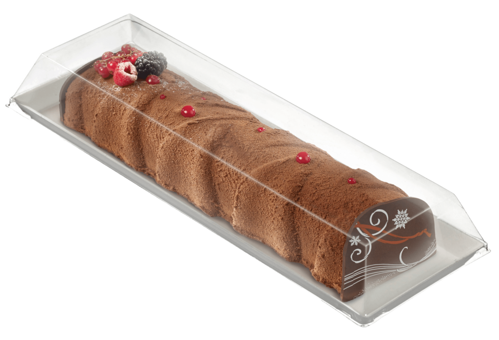 Pensé pour répondre aux besoins des traiteurs, restaurateurs et hôteliers, ce nouveau plateau a été développé en forme allongée pour convenir aux gâteaux roulés, bûches et autres mets volumineux.