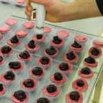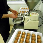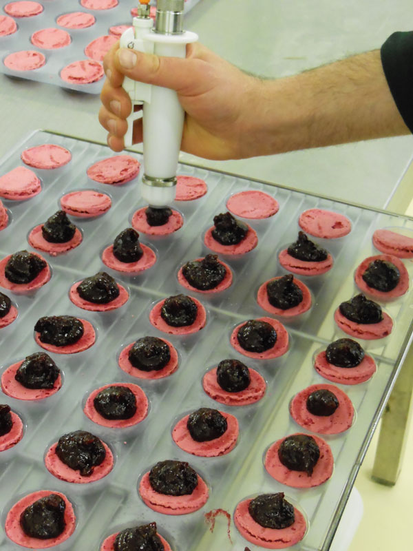 Il a gardé son magasin à Dijon, envisage de créer une école dans son ancien labo, dispose d’un kiosque au centre commercial « la Toison d’Or » où il vend en exclusivité une gamme de choux, un dernier magasin sur son nouveau local, là où 100% de ses pâtisseries et chocolats sont fabriqués. Pour rationaliser toute la production, Pierre s’est équipé chez SPIRAL FRANCE et possède la PVS 40001. Dotée d’un clavier numérique qui permet de contrôler la vitesse de distribution du volume, du cycle automatique et de la distribution en continu, c’est l’outil indispensable pour produire et doser à vitesse variable. Pierre a choisi cette machine car il parvient ainsi à garnir plus de 1000 choux à l’heure, jusqu’à 1200 pour celui qui maîtrise bien l’outil. Pour le garnissage des choux, la machine distribue au gramme près, afin d’assurer une régularité irréprochable sur la gamme. D’ailleurs, tout est calculé : après la dresseuse qui assure le même pochage, la doseuse calibre le dosage approprié. Grâce à toutes ses adaptations possible, la machine est idéale et permet d’appliquer la même méthode de fabrication aux éclairs et aux macarons… pour le dosage de ces derniers, Pierre place le curseur de la machine sur cycle automatique, … et bien malin est celui qui pourrait produire pareille quantité avec une telle régularité sans cette machine!
