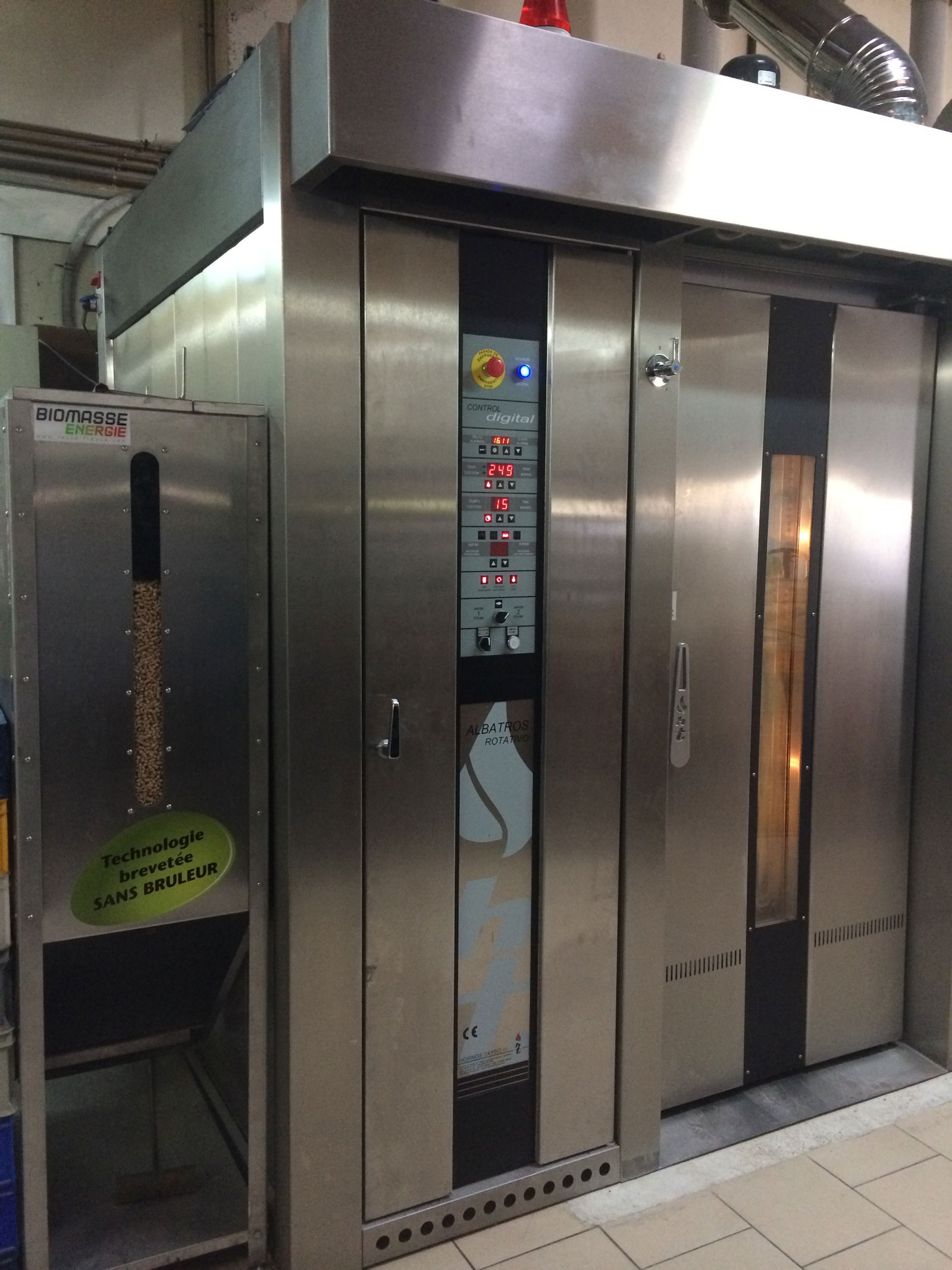 Ce brevet et la biomasse ont fait l’objet d’une nomination aux trophées Europain de l’innovation en 2014 et au trophée Innovation au SIRHA 2015. Garanti 10 ans avec entretien annuel Tayso, aujourd’hui, de nombreux artisans regardent de plus près comment réduire une facture d’énergie tout en travaillant avec la satisfaction d’une fournée très satisfaisante jusqu’à la sortie du four. Le chargement des pellets de bois dans la trémie (320 kgs) se fait en général entre une à deux fois par semaine et le stockage est en sacs de 15 kg. Fini les rondins de bois sales et humides et autres palettes stockés au coin du four, dans un fournil où l’hygiène demande de plus en plus de vigilance. Le temps pour charger la trémie est de 8 minutes environ.