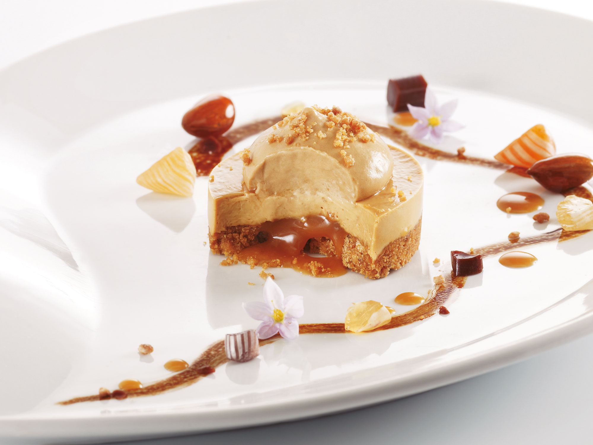 Dans notre cuisine d’essai, nous créons et développons tous nos produits, selon des thèmes précis. Je suis entouré d’une équipe de chefs cuisiniers et pâtissiers, mais également d’ingénieurs culinaires, qui accompagnent les lancements des nouveaux produits sur nos deux sites de fabrication. L’atelier breton, situé à La Guerche de Bretagne (140 collaborateurs – 3000 m2) est dédié à la fabrication de tout ce qui demande précision et minutie, tels que les pièces cocktails et les petits fours. Le second atelier normand, situé à Fécamp (160 collaborateurs – 8 000m2) a vu le jour en 2006 et c’est là que sont fabriqués les accompagnements à base de légumes et les desserts.