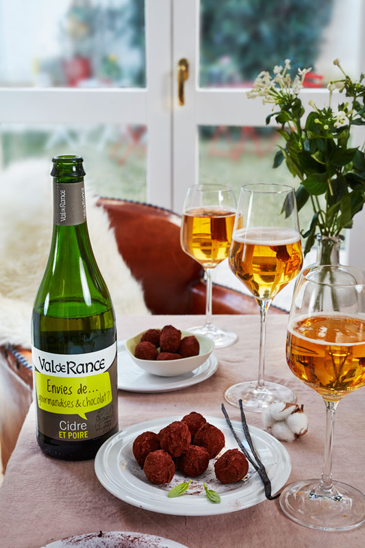 Laissez-vous surprendre avec une recette originale de truffes à la vanille et au basilic et improvisez-vous chocolatier d’un jour ! Concevez cette douceur au chocolat spécialement imaginée pour Val de Rance par les chefs chocolatiers Edwin et Arthur de la Maison Edwart et mariez-la avec les arômes subtiles du cidre & poire Val de Rance de la gamme Envies de ! Vos papilles se raviront de cette expérience gustative avec du chocolat !
