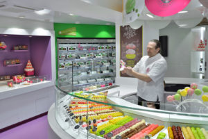 Couleurs acidulées, mobilier ludique, arômes subtils, tout est fait pour éveiller les sensations et les émotions des gourmands-gourmets. Et dans cette boutique, pas d’ostentatoire. Plutôt de la simplicité et de la convivialité ! « J’ai toujours pensé qu’il y avait une place pour une pâtisserie luxueuse, de qualité et accessible », commente Yannick Lefort, à contre-pied de la pâtisserie de luxe sous écrins, presque impénétrable.